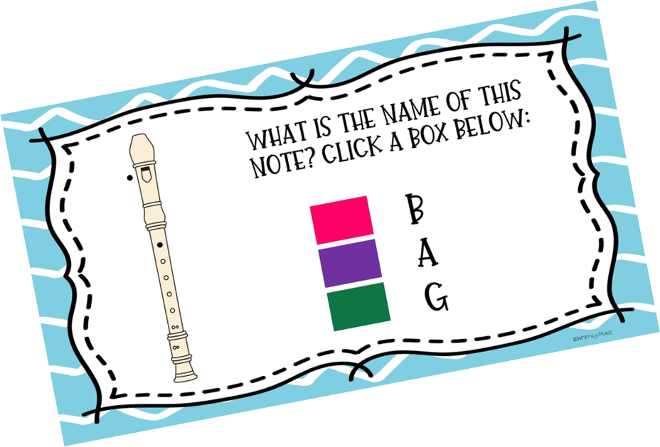 Admittedly less fun than quizizz, but still valuable, my students completed this Digital Independent Recorder Activity ($2) for the notes BAG. It asks students to match notes with fingerings, fingerings with notes, letters with notes, and letters with fingerings. I put it in our Google Classroom and made sure to click “make a copy for each student.”